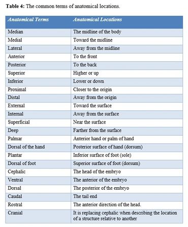 There are some terms that are specifically used in the description of embryology (Fig. 4) and (Table 5).
