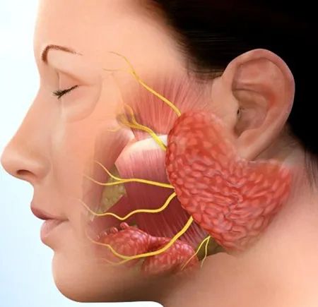 It is a medical term that describes the swelling of one or both parotid glands. There are two types of parotitis: bacterial and viral. While paramyxovirus causes the viral parotitis leading to a severe swelling of the parotid glands, radiation therapy or immunodeficiency cause the bacterial infection leading to the acute bacterial parotitis. Also, chronic parotitis is defined as recurrent bouts of infection in patients with a blocked or narrowed salivary duct (Fig. 26).