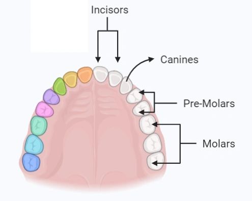 The mechanical digestion is done through the teeth, which are divided into incisors and molars that cut and grind the food, respectively into smaller pieces suitable for swallowing (Fig. 3). Incisors are located at the front of the mouth cutting and tearing food, while molars appear in the middle and back of the mouth. Visit Dental page for more detail.