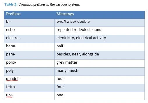 Not every medical term has both prefix and suffix along with the word root. The medical term may have both or may have only prefix or suffix (Table 2)(Table 3)