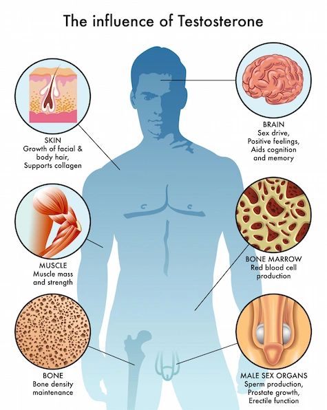 The testosterone is the most important hormonal product of the testes. During puberty, FSH continuously catalyzes the seminiferous tubules to produce sperm, and LH constantly invigorates the interstitial cells. As a result, testosterone is secreted continuously for the rest of a man’s life and its increasing level in the blood spurs the reproductive organs to reach their adult size Testosterone affects the male secondary sex characteristics, and hence called the masculinizing hormone. These characteristics refer to the features appearing in nonreproductive organs and stimulated by sex hormones such as increased hair growth all over the body, deepening of the voice, and enlarged skeletal muscles (Fig. 6).