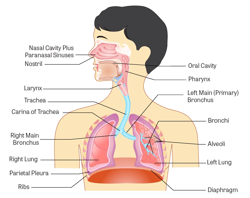 The respiratory system indicates the organs and all other portions in your body involved in the process of breathing in and out. It is responsible for inspiration or inhalation, expiration or exhalation, and the exchange of oxygen and carbon dioxide between the lungs and other body tissues. With the failure of the respiratory system, all body cells, which constantly require oxygen, cannot survive. The process of respiration is controlled by the respiratory center in the brain.