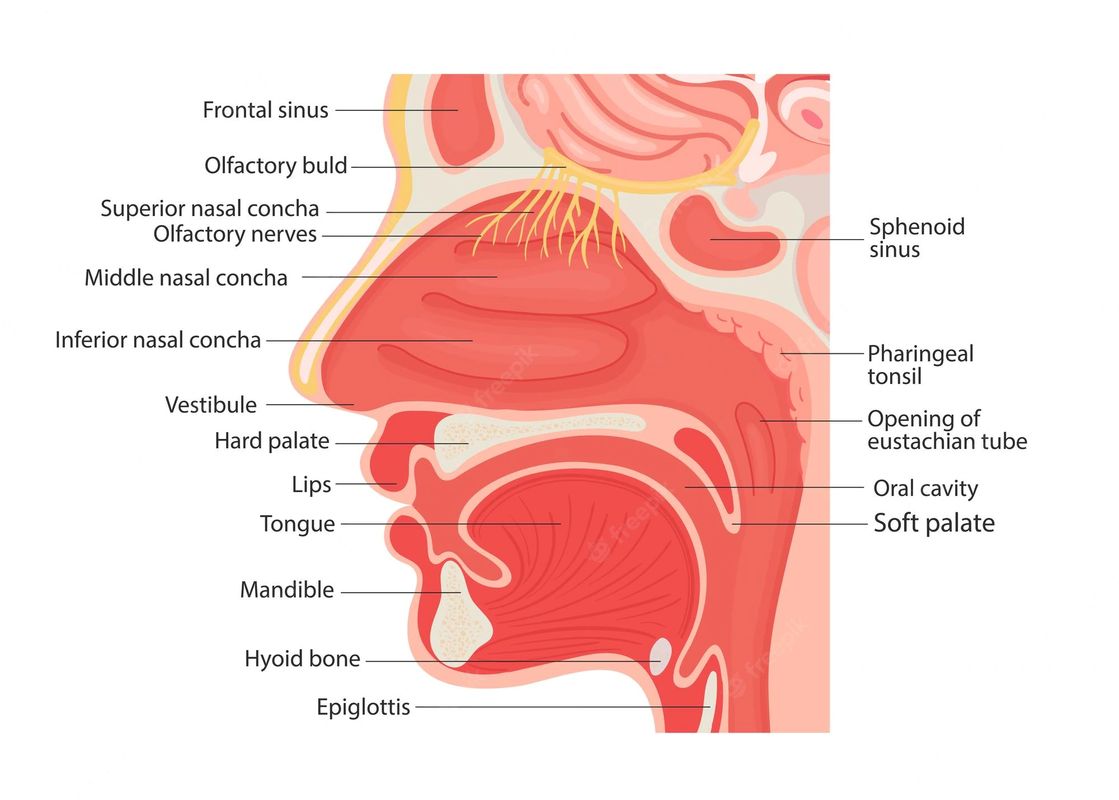 In addition to the vital role of the respiratory system in pulmonary ventilation (inhalation and exhalation), and in the external and internal respiration including the exchange of gases between the lungs and bloodstream and between the bloodstream and body tissues, respectively, it is in charge of olfaction which is a chemical sensation as well as sounds’ production through air vibration in the vocal cords.